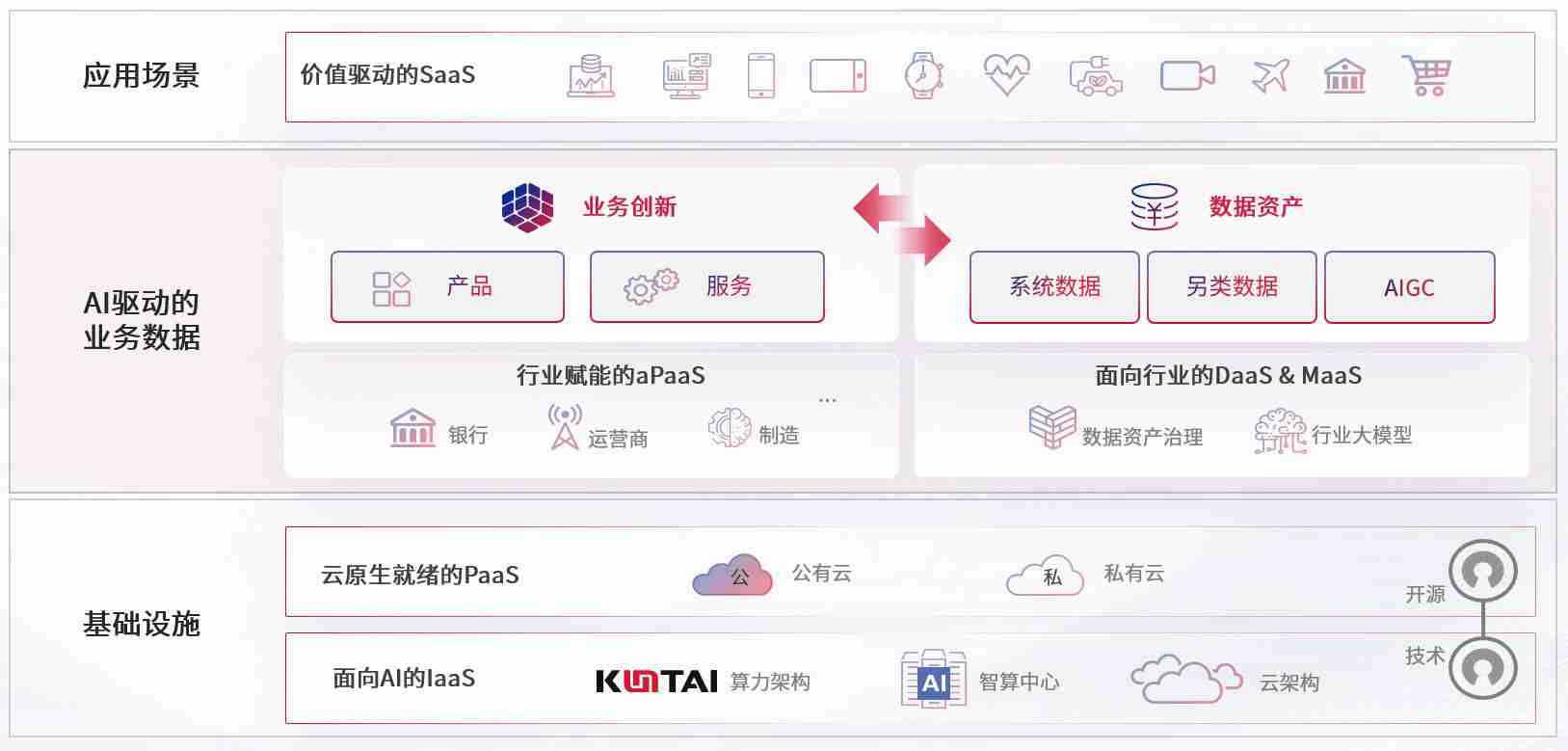 数字时代,,围绕企业数字化转型的关键要素,,,风速体育数码开创性的提出数云融合战略和技术体系框架,,,,着力在云原生、、、、数字原生、、、AI原生和信创产业上架构产品和服务能力,,,为处在不同数字化转型阶段的快消零售、、汽车、、、、金融、、、医疗、、、、政企、、、、教育、、、运营商等行业客户提供泛在的敏捷IT能力和融合的数据驱动能力,,构建跨界融合创新的数字业务场景和新业务模式,,,助力企业级客户建立面向未来的核心能力和竞争优势,,,全面推动社会的数字化、、、、智能化转型升级。。